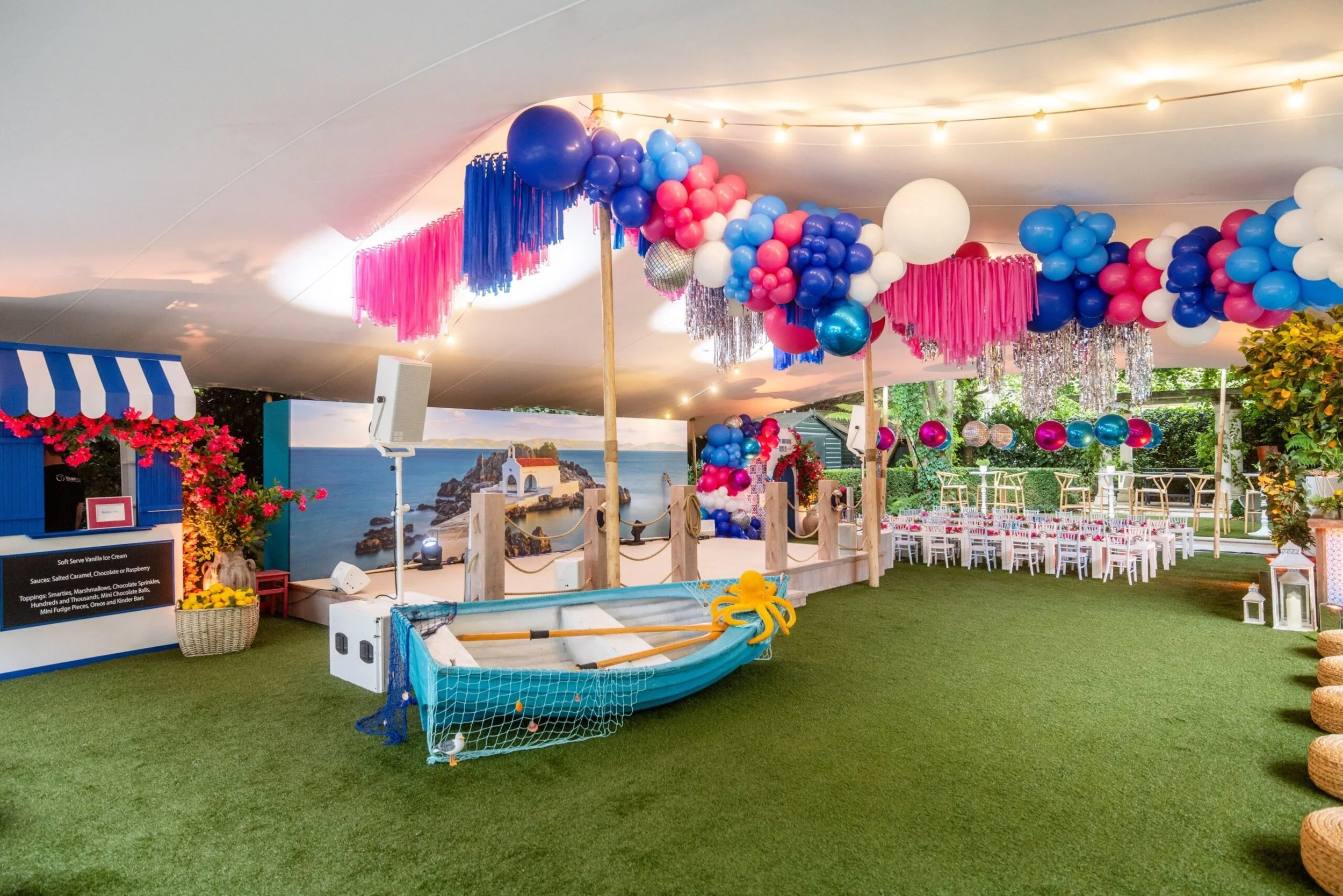 With 45 children and 30 adults to entertain, the day featured a carefully curated programme of experiences, including a bespoke Mamma Mia! show created especially for the occasion, face painting, an interactive ice-cream parlour, and food trikes serving a selection of delicious treats alongside a Greek-inspired bar. A vibrant, high-energy celebration from start to finish — and it was every bit as joyful as it sounds.