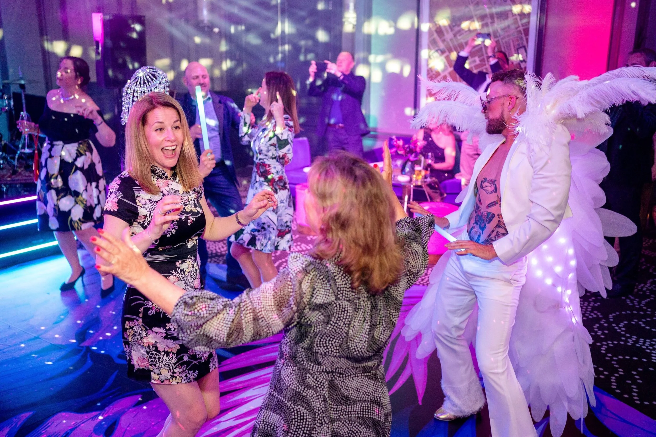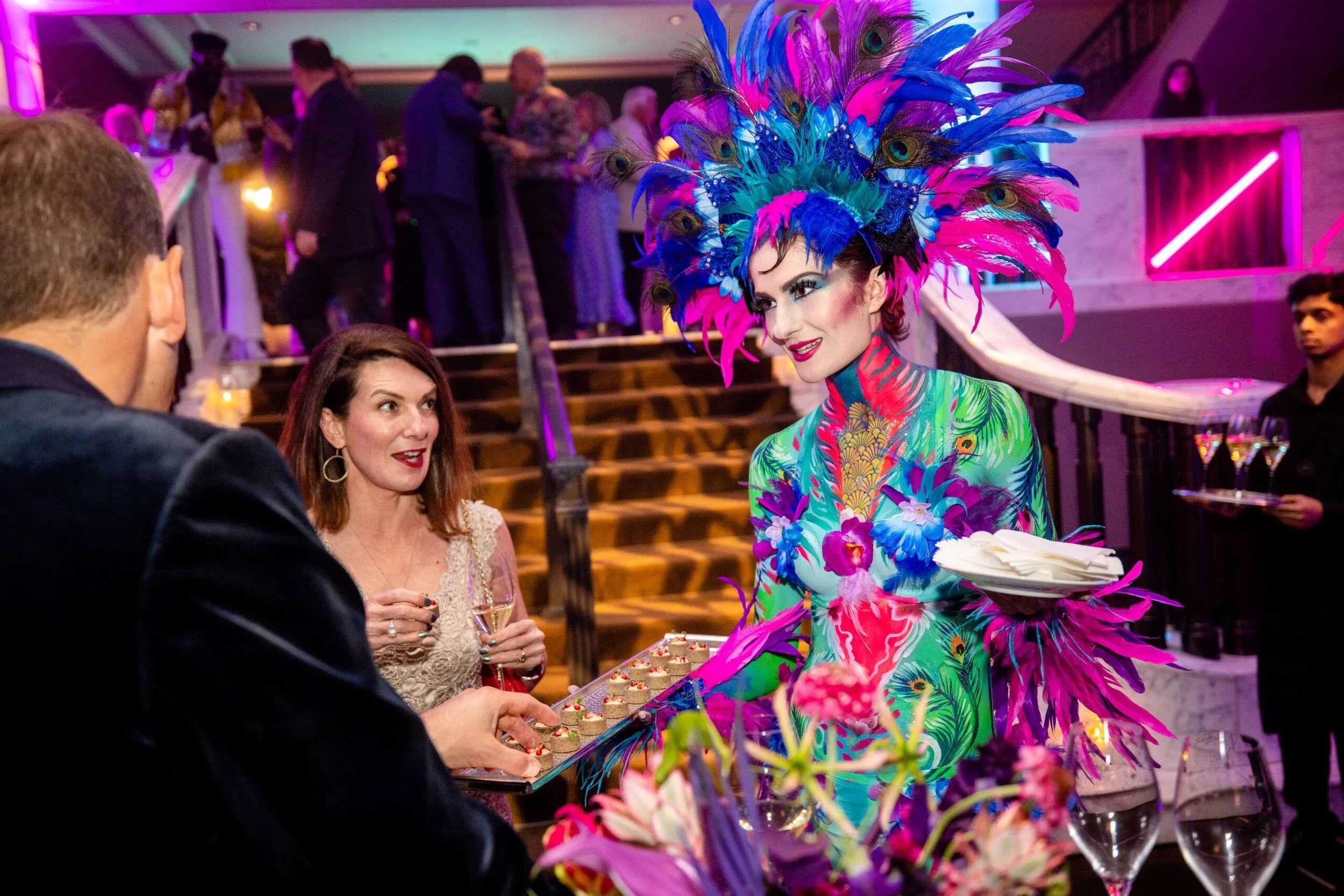 Set against the refined backdrop of the Rosewood London, the evening unfolded as an immersive celebration filled with energy and flair. A curated cast of performers — from styled greeters and Polaroid photographers to choreographed dance troupes, LED dancers, and a mirrored bunny — kept the atmosphere vibrant and the dance floor full well into the night.