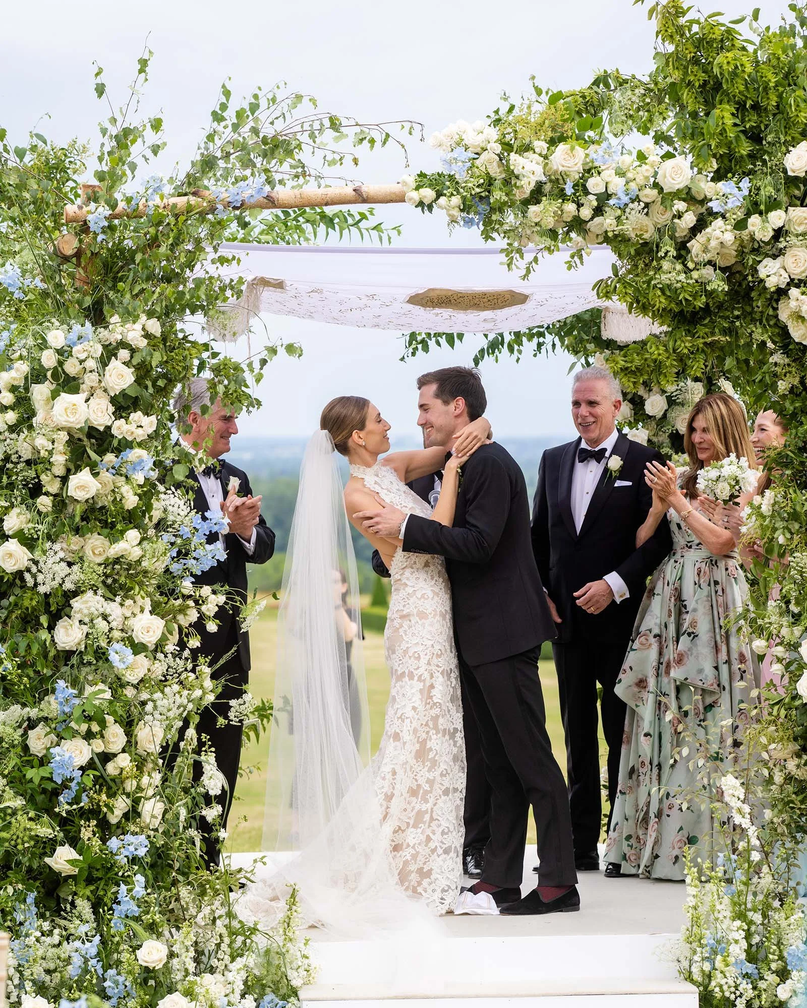 The marquee was styled with hanging lanterns that cast a warm, romantic glow, while bespoke patterned tablecloths added a layer of detail and individuality to the tablescape. A traditional Jewish ceremony took place outdoors, seamlessly woven into the setting, resulting in a celebration that balanced heritage, craftsmanship, and timeless countryside elegance.
